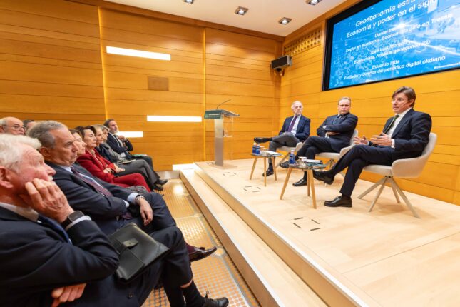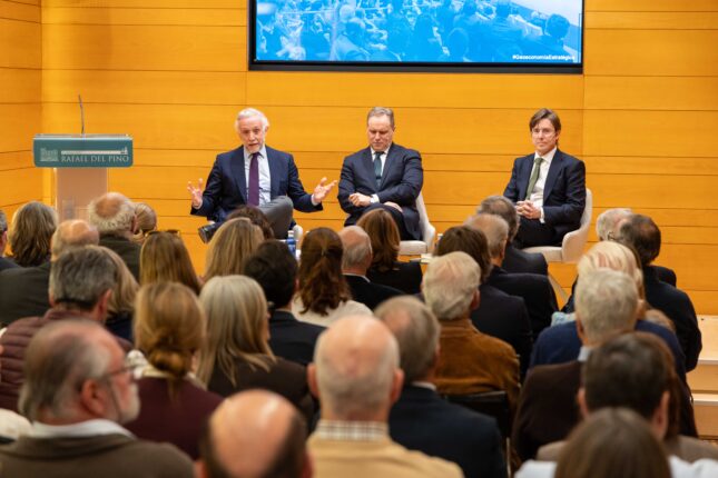 La Fundación Rafael del Pino acogió el 23 de marzo de 2026 el diálogo «Geoeconomía estratégica: Economía y poder en el siglo XXI», con la participación de José Luis Moreno y Daniel Lacalle, moderado por Eduardo Inda, con motivo de la presentación del libro Geoeconomía estratégica. El encuentro se articuló como una reflexión sobre la economía contemporánea desde una perspectiva estructural, en la que los factores económicos, energéticos y tecnológicos se integran en una lógica de poder.