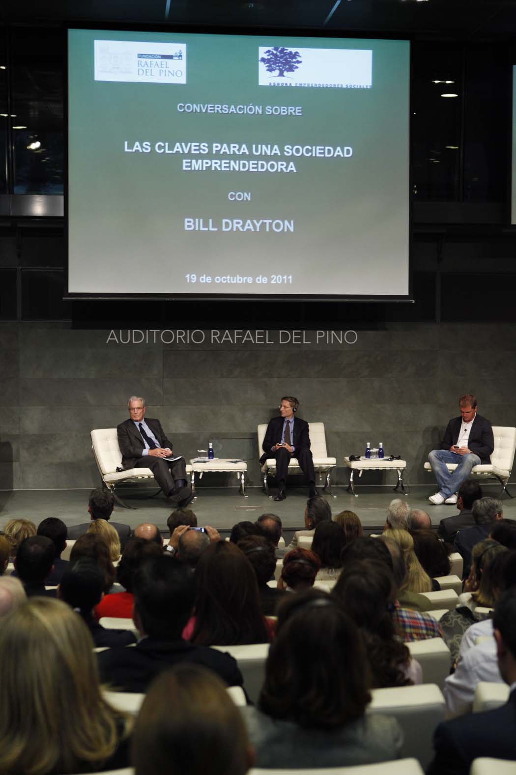The Rafael del Pino Foundation hosted, on 19 October 2011, the talks of Bill DraytonThe Prince of Asturias Award for International Cooperation in 2011, with Antonio Garrigues Walker y Zaryn Dentzel under the title "Everyone a Changemaker".